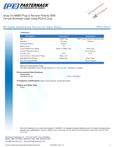 RF Cable Assemblies Technical Data Sheet PE3C4021