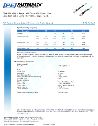RF Cable Assemblies Technical Data Sheet PE3C3245