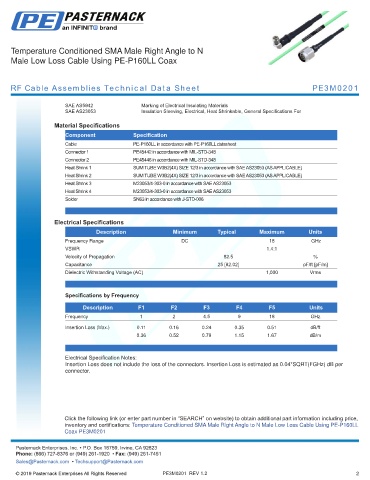 RF Cable Assemblies Technical Data Sheet PE3M0201