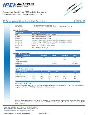 RF Cable Assemblies Technical Data Sheet PE3M0235