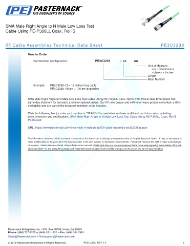 RF Cable Assemblies Technical Data Sheet PE3C3238