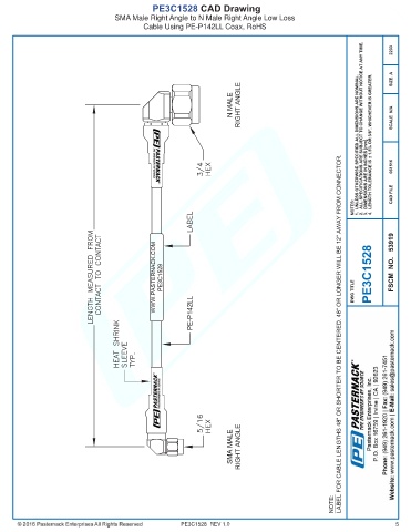 PE3C1528 CAD Drawing SMA Male Right Angle to N Male Right Angle Low Loss Cable Using PE-P142LL Coax, RoHS PE3C1528 REV 1.0 5