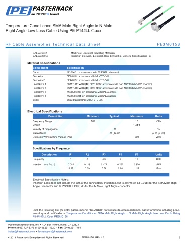 RF Cable Assemblies Technical Data Sheet PE3M0158
