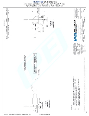 REVISIONS DATE 01/25/19 P2 CONTACT RP PE44816 N MALE RIGHT ANGLE PART NUMBER PE3M0158