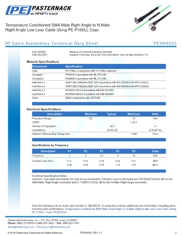 RF Cable Assemblies Technical Data Sheet PE3M0203