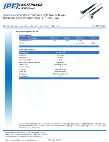 RF Cable Assemblies Technical Data Sheet PE3M0203