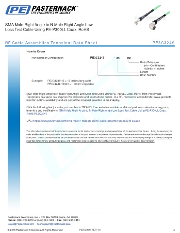 RF Cable Assemblies Technical Data Sheet PE3C3249