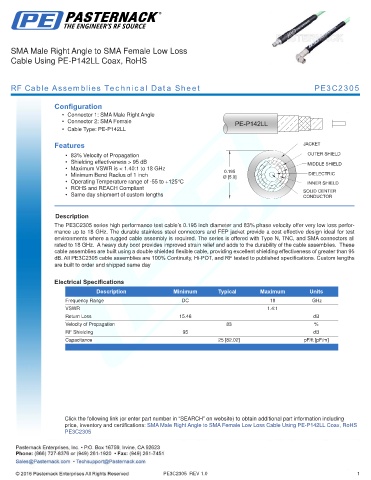 RF Cable Assemblies Technical Data Sheet PE3C2305
