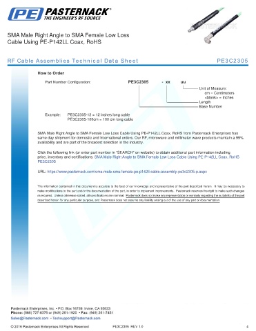 RF Cable Assemblies Technical Data Sheet PE3C2305