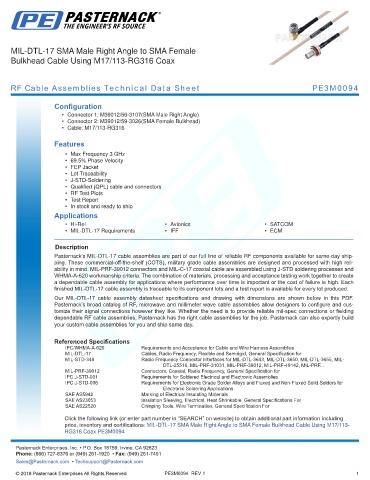 RF Cable Assemblies Technical Data Sheet PE3M0094