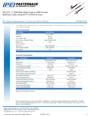 RF Cable Assemblies Technical Data Sheet PE3M0094