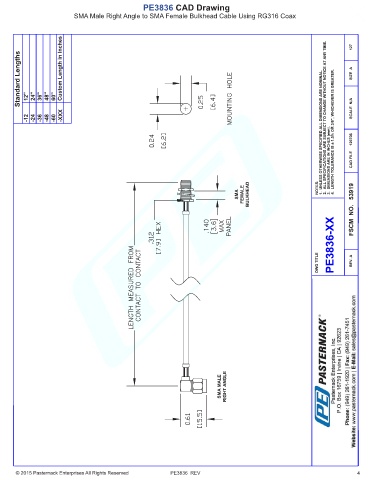 PE3836 CAD Drawing SMA Male Right Angle to SMA Female Bulkhead Cable Using RG316 Coax PE3836 REV 4