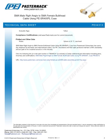 inventory and certifications: SMA Male Right Angle to SMA Female Bulkhead Cable Using PE-SR405FL Coax PE34313