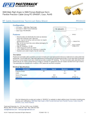 RF Cable Assemblies Technical Data Sheet PE39420