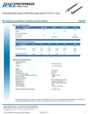 RF Cable Assemblies Technical Data Sheet PE342