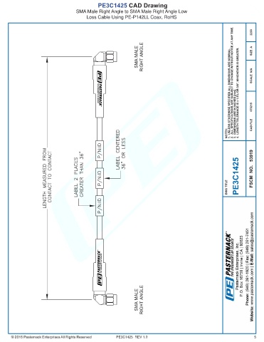 PE3C1425 CAD Drawing SMA Male Right Angle to SMA Male Right Angle Low Loss Cable Using PE-P142LL Coax, RoHS PE3C1425 REV 1.0 5