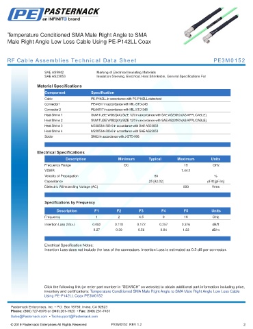 RF Cable Assemblies Technical Data Sheet PE3M0152