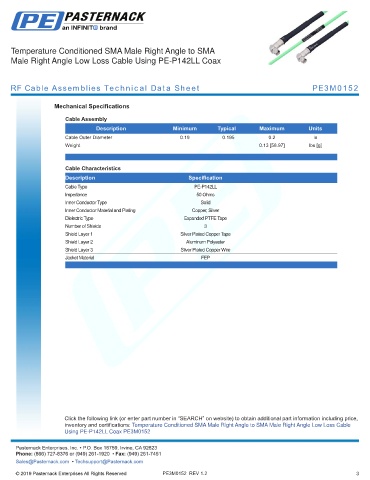 RF Cable Assemblies Technical Data Sheet PE3M0152