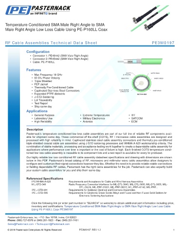 below in this PDF. Pasternack’s broad catalog of RF, microwave and millimeter wave cable assemblies allow designers to