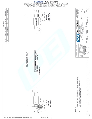 LENGTH MEASURED FROM CONTACT TO CONTACT PE3M0197-XXX PASTERNACK D/C WWYY SN XXXX PE-P160LL .X=± .XX=± .XXX=±