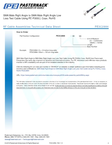 RF Cable Assemblies Technical Data Sheet PE3C2884