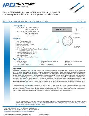any representation or warranty regarding the suitability of the part described herein for any particular purpose, and Pasternack does not assume any liability arising out of the use of any part or documentation.