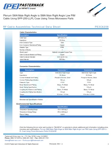 RF Cable Assemblies Technical Data Sheet PE3C6208