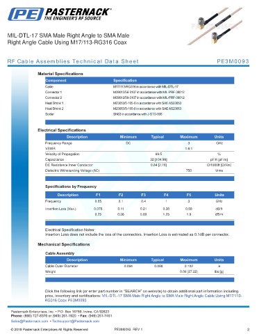 RF Cable Assemblies Technical Data Sheet PE3M0093