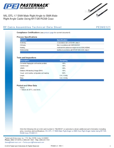 RF Cable Assemblies Technical Data Sheet PE3M0121