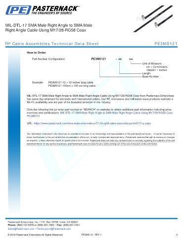 any representation or warranty regarding the suitability of the part described herein for any particular purpose, and Pasternack does not assume any liability arising out of the use of any part or documentation.
