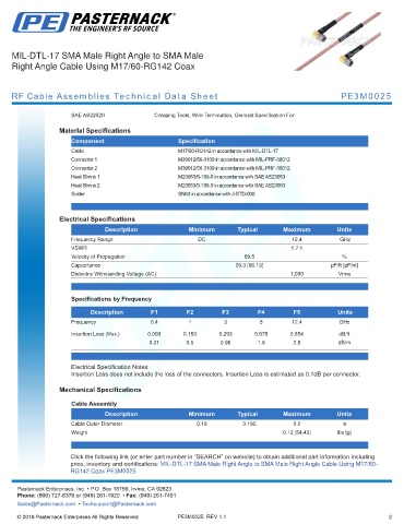 RF Cable Assemblies Technical Data Sheet PE3M0025