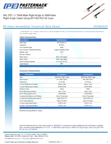 RF Cable Assemblies Technical Data Sheet PE3M0025