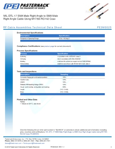 RF Cable Assemblies Technical Data Sheet PE3M0025