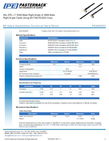 RF Cable Assemblies Technical Data Sheet PE3M0053