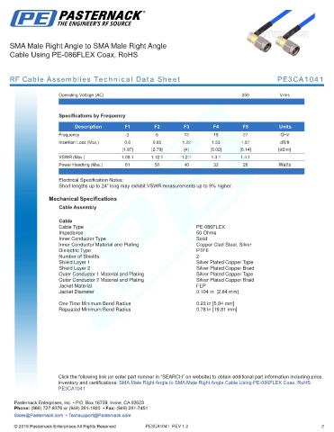 RF Cable Assemblies Technical Data Sheet PE3CA1041