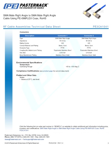 RF Cable Assemblies Technical Data Sheet PE3CA1041