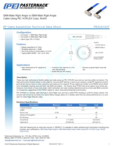 RF Cable Assemblies Technical Data Sheet PE3CA1037