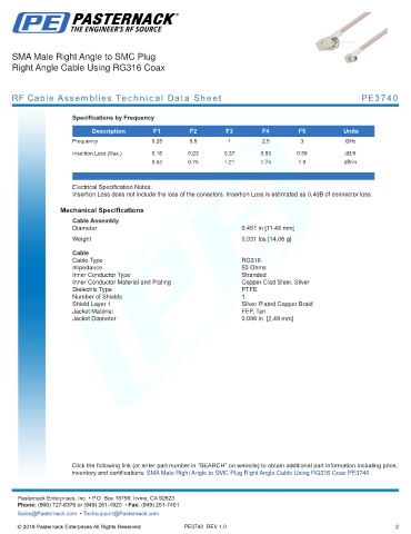 RF Cable Assemblies Technical Data Sheet PE3740