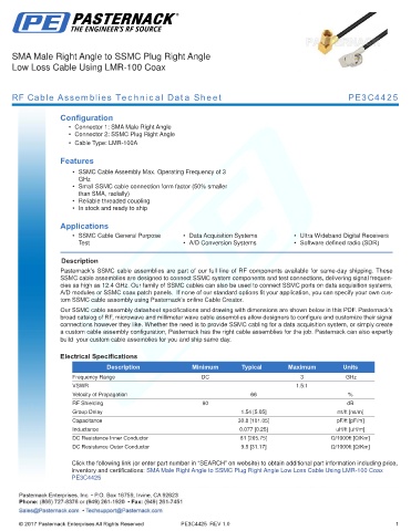 RF Cable Assemblies Technical Data Sheet PE3C4425