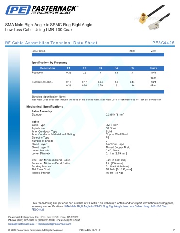 RF Cable Assemblies Technical Data Sheet PE3C4425