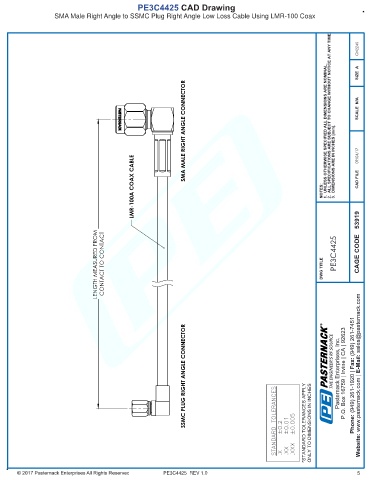 SSMC PLUG RIGHT ANGLE CONNECTOR STANDARD TOLERANCES *STANDARD TOLERANCES APPLY ONLY TO DIMENSIONS IN INCHES R THE ENGINEER'S RF SOURCE Pasternack Enterprises, Inc. P.O. Box 16759 | Irvine | CA | 92623 Phone: (949) 261-1920 | Fax: (949) 261-7451 Website: www.pasternack.com | E-Mail: sales@pasternack.com