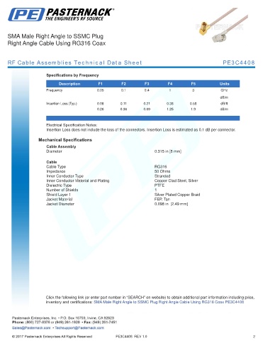 RF Cable Assemblies Technical Data Sheet PE3C4408