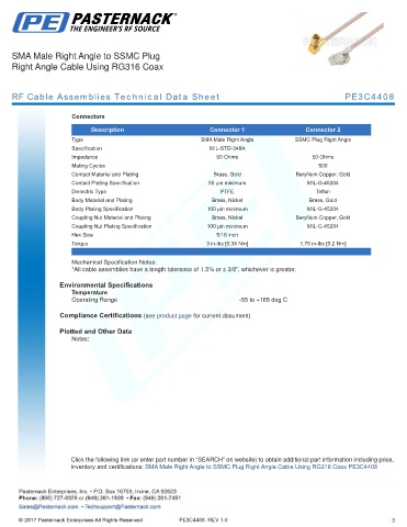 RF Cable Assemblies Technical Data Sheet PE3C4408