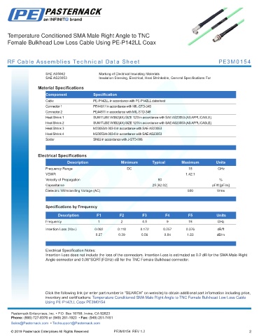 RF Cable Assemblies Technical Data Sheet PE3M0154