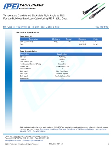 RF Cable Assemblies Technical Data Sheet PE3M0199