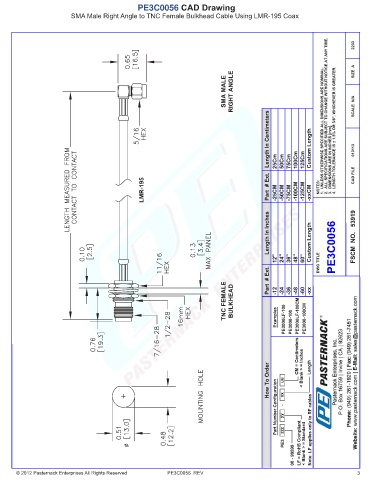 PE3C0056 CAD Drawing SMA Male Right Angle to TNC Female Bulkhead Cable Using LMR-195 Coax © 2012 Pasternack Enterprises All Rights Reserved PE3C0056 REV 3