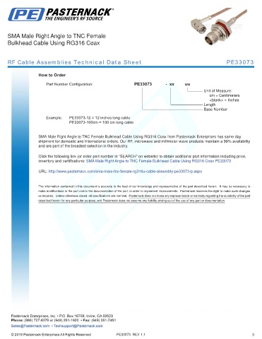 RF Cable Assemblies Technical Data Sheet PE33073