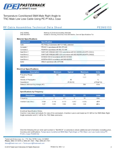 RF Cable Assemblies Technical Data Sheet PE3M0153