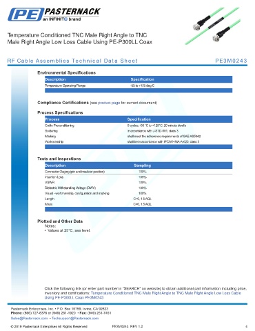 RF Cable Assemblies Technical Data Sheet PE3M0243
