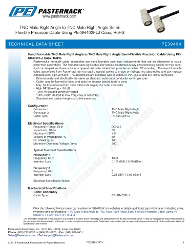inventory and certifications: TNC Male Right Angle to TNC Male Right Angle Semi-Flexible Precision Cable Using PE-